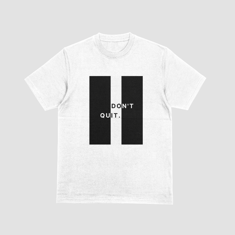 Stay inspired and stylish with this white “Don’t Quit” motivational graphic T-shirt. Designed for those who never back down, this tee blends a clean, minimalist look with a powerful message to keep pushing forward. The crisp white color makes it versatile and easy to style, while the bold lettering adds a striking, modern edge.
