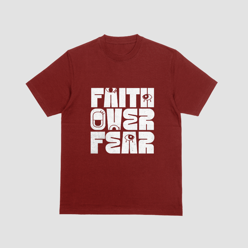 Step forward with courage and conviction in our “Faith Over Fear” T-shirt — a powerful expression of belief in the face of uncertainty. Designed in a rich maroon color, this tee blends elegance with meaning, offering a daily reminder that faith will always outweigh fear. Made from soft, breathable cotton, it’s perfect for both relaxed days and bold moments.